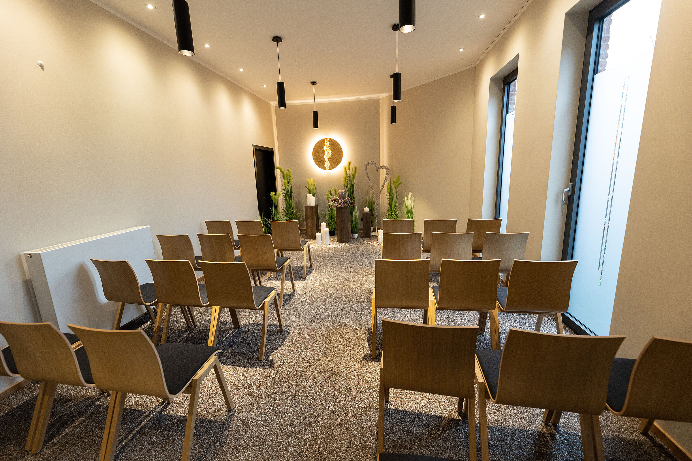Der Abschiedsraum ist ein ganz wesentlicher Bestandteil unseres Hauses. Er ist so gestaltet, dass Sie in einer gewissen Abgeschiedenheit gemeinsam mit Ihren Gästen Abschied von Ihrem verstorbenen Angehörigen nehmen können. Hier finden auch Trauerfeiern im persönlichen Rahmen statt. Der Abschiedsraum erzeugt allein aufgrund seiner überschaubaren Größe eine familiäre, vertraute Grundstimmung. In unserem Besprechungsraum informieren unsere Mitarbeiterinnen und Mitarbeiter über die Organisation und Vorbereitung der Bestattung.